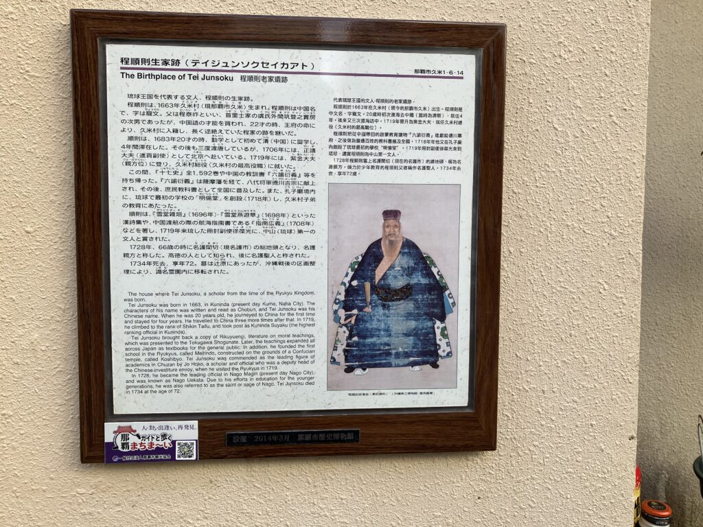 散策順路 9:30 久米孔子廟参拝 ⇒ 明倫堂 ⇒ クニンダテラス ⇒ 「久米村発祥地」記念碑 松山公園⇒ 堂小(どぅぐぁー)⇒ 忠盡堂 堂屋敷跡 ⇒ 久米小公園と久茂地川支流の堀跡⇒かっての久米孔子廟にたつ孔子像(現 那覇商工会議所)⇒ 泉先交差点からみる久米大通⇒天妃宮跡 天妃小小学校 ⇒ 天使間跡(現 那覇医師会館) ⇒ 程順則 生家跡 ⇒ 天尊廟・関帝廟・龍王殿・天妃宮 ⇒ 程順則の頌徳碑 ⇒ 蔡温の頌徳碑 ⇒ 鄭迵の顕彰碑 ⇒ 蔡氏門中会事務所(昼食)